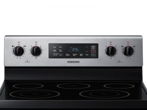 The apartment that I live in has an electric range with stove on top and oven down below. At the very top is a control panel that has several knobs to control each heater coil and it looks like this: